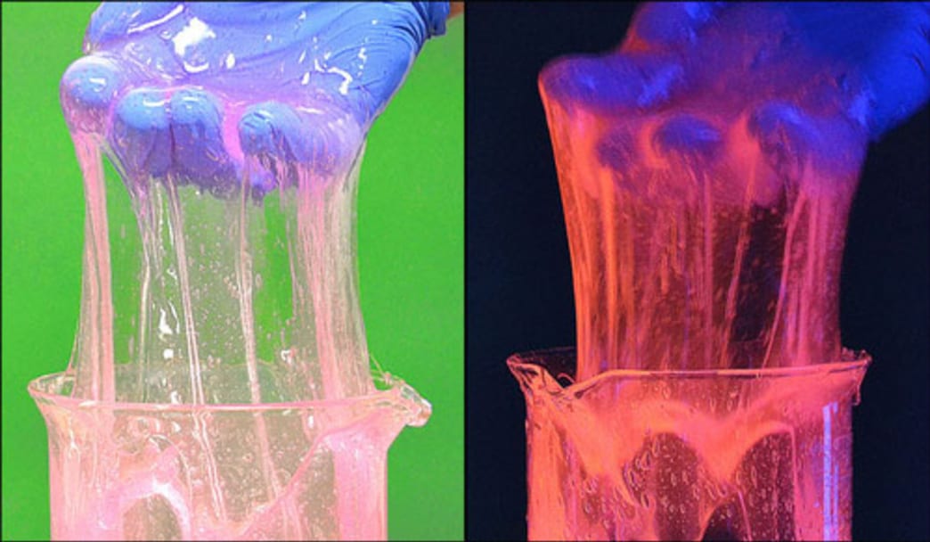 Polyvinyl Alcohol is a synthetic homopolymer consisting of one single repeating unit, vinyl alcohol. When sodium borate is added to the polyvinyl alcohol the sodium borate dissolves to form boric acid and the boric acid then cross-links the polyvinyl alcohol chains. Cross-linking is a process in which the long polymer chains are linked to one another at various points along each chain. As more cross-linking occurs, the thicker the mixture becomes thicker.