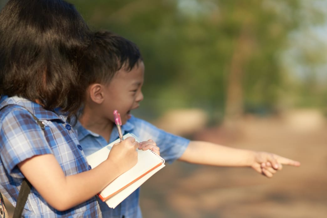 Once the glue is dried and the stick can stand by itself, place the cardboard square on a flat surface where it will be exposed to the sun. Take note of the time of day. Mark the point on the board where the tip of shadow is located and write the date.
