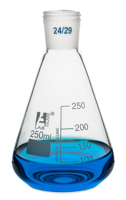 Erlenmeyer Flask with 24/29 Joint, 250ml - 50ml White Graduations - Interchangeable Screw Thread Joint - Borosilicate Glass - Eisco Labs