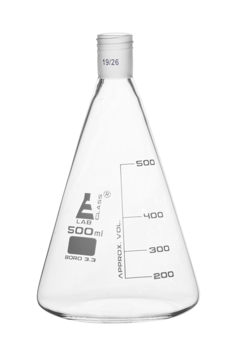 Erlenmeyer Flask with 19/26 Joint, 500ml Capacity, 100ml Graduations, Interchangeable Screw Thread Joint, Borosilicate Glass - Eisco Labs
