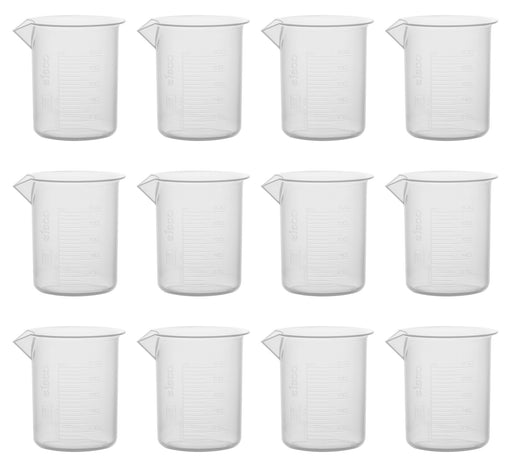 12PK Plastic Beakers, 100ml - Polypropylene - Raised Graduations