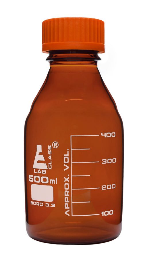 Reagent Bottle, 500ml - Amber - With Screw Cap - Borosilicate Glass
