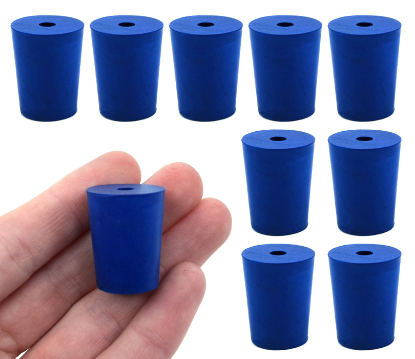 10PK Neoprene Stoppers, 1 Hole - ASTM - Size: #2 - 16mm Bottom, 20mm Top, 25mm Length