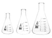 3-Piece Narrow Neck Erlenmeyer Flask Set, 500/1000/2000mL, White Graduations, Borosilicate Glass