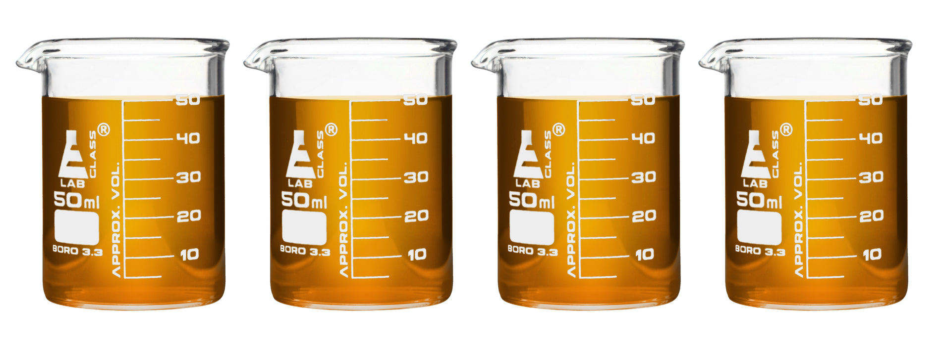 4PK Beaker Shot Glasses, 50mL - Borosilicate Glass